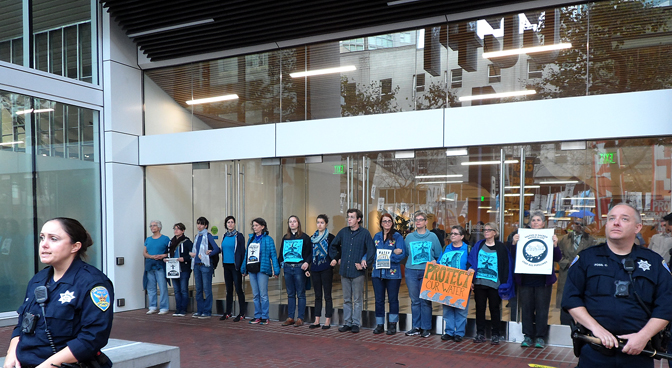 Over a hundred risked arrest, blocking the street and entrances around the Army Corps of Engineers’ office on Market Street, a major down thoroughfare. Police declined to make arrests, and news arrived that the ACE had issued a statement at Standing Rock accepting the need for “additional discussion and analysis.” (See UK Guardian link below for news updates).